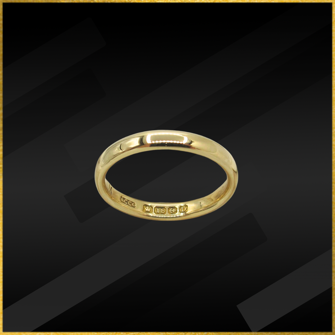 18 carat yellow gold wedding band.