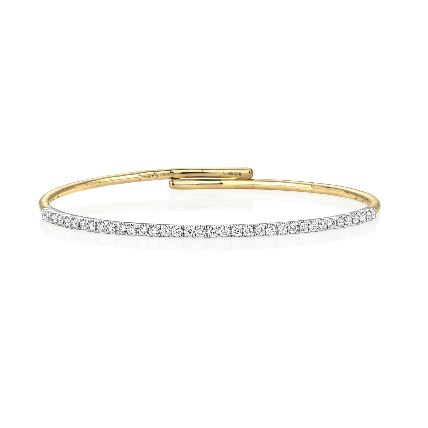 A stunning Diamond flexi bangle manufactured in 18 carat yellow gold. Set with an impressive 0.75 carats of Diamonds. This will make a stunning gift for that special person.