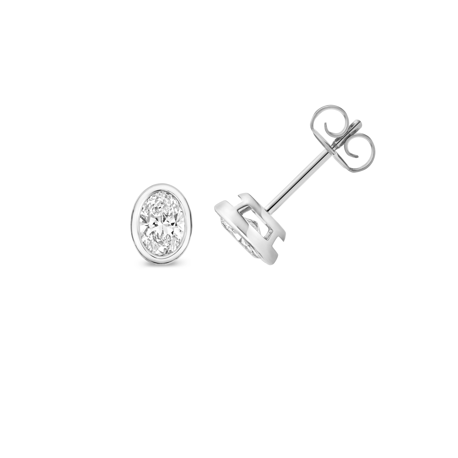 18 carat white gold oval laboratory grown diamond stud earrings.