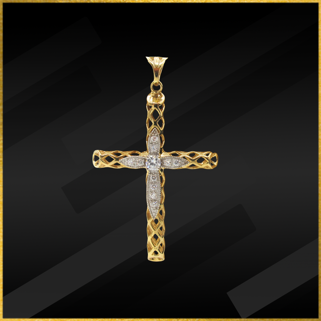 9 carat yellow gold and white gold cubic zirconia cross pendant.