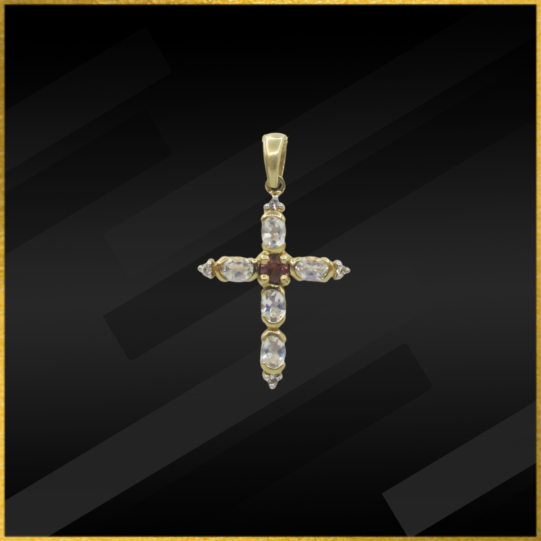Moonstone is 5mm x 3mm, garnet is 4mm.
