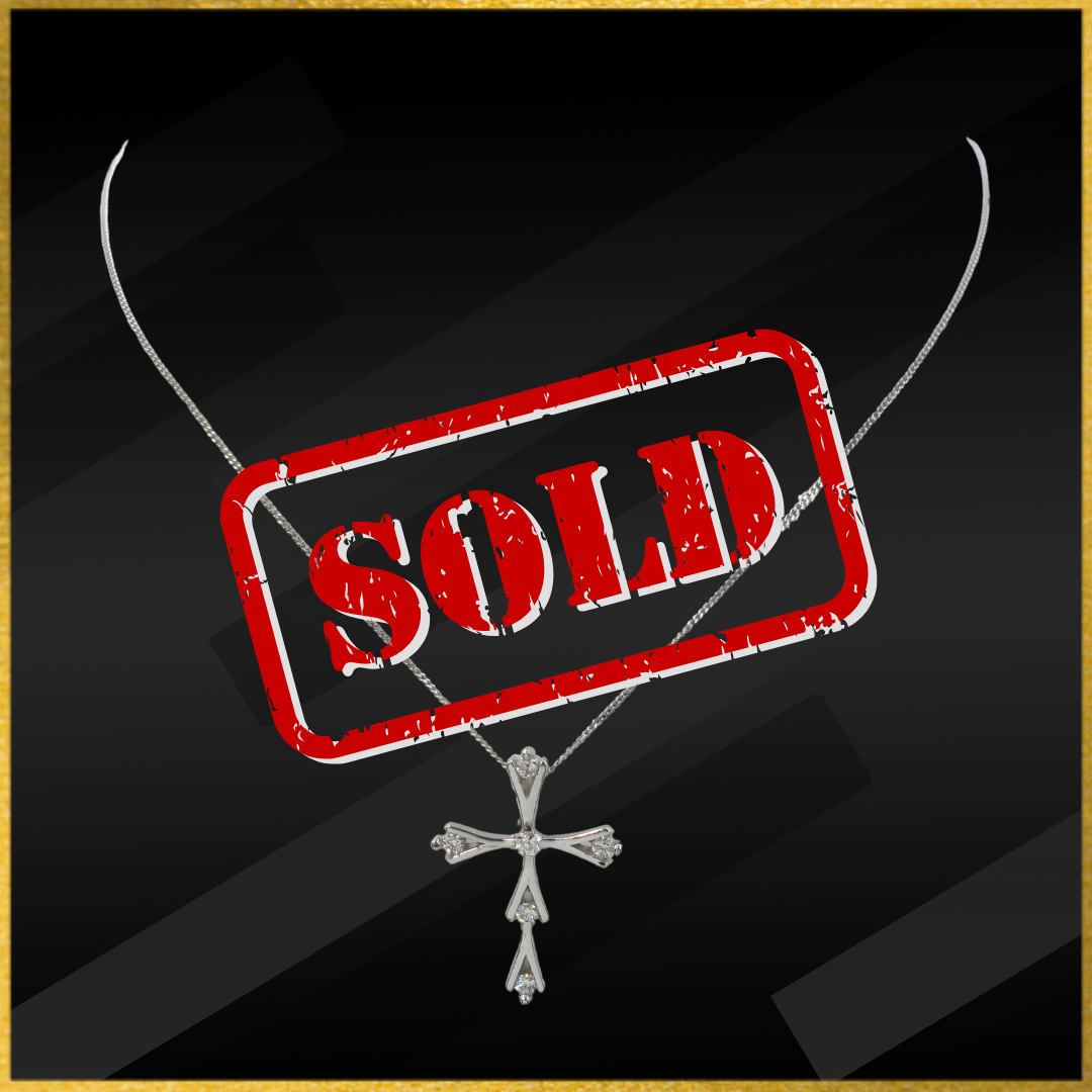 9 carat white gold cz cross pendant and chain with a bolt ring catch.