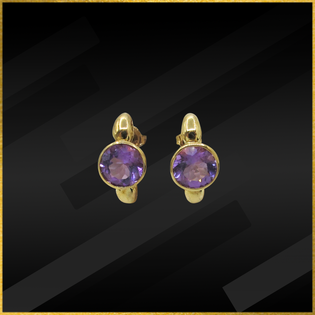 9 carat yellow gold amethyst stud earrings.