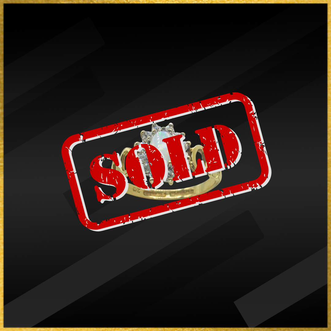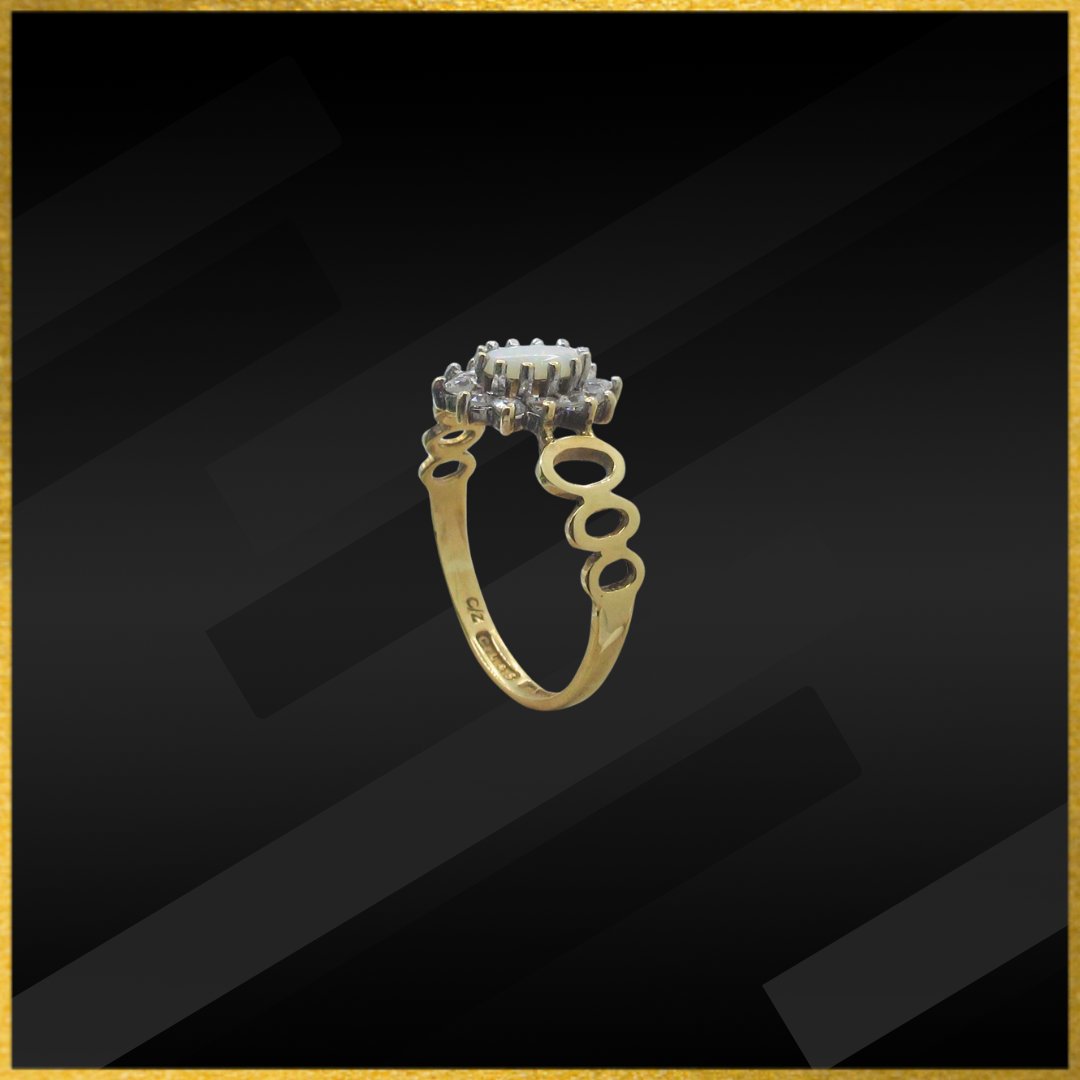 9 carat yellow gold opal and cubic zirconia ring.
