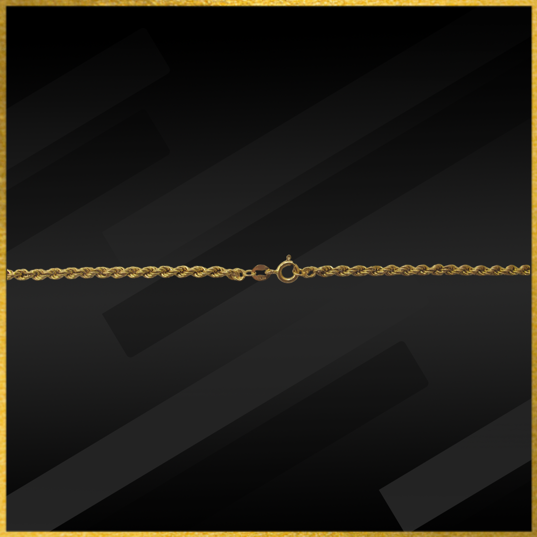 9 carat yellow gold rope chain with a bolt ring catch.