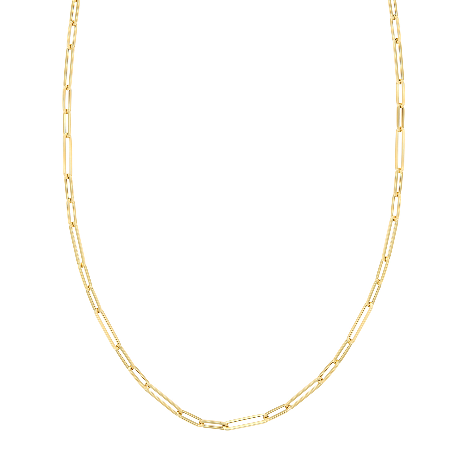 9ct gold paperclip necklet. This elegant 9ct gold necklet features a modern design with elongated links. This necklet is the perfect piece of jewellery for everyday wear or even as a gift for yourself or somebody else.