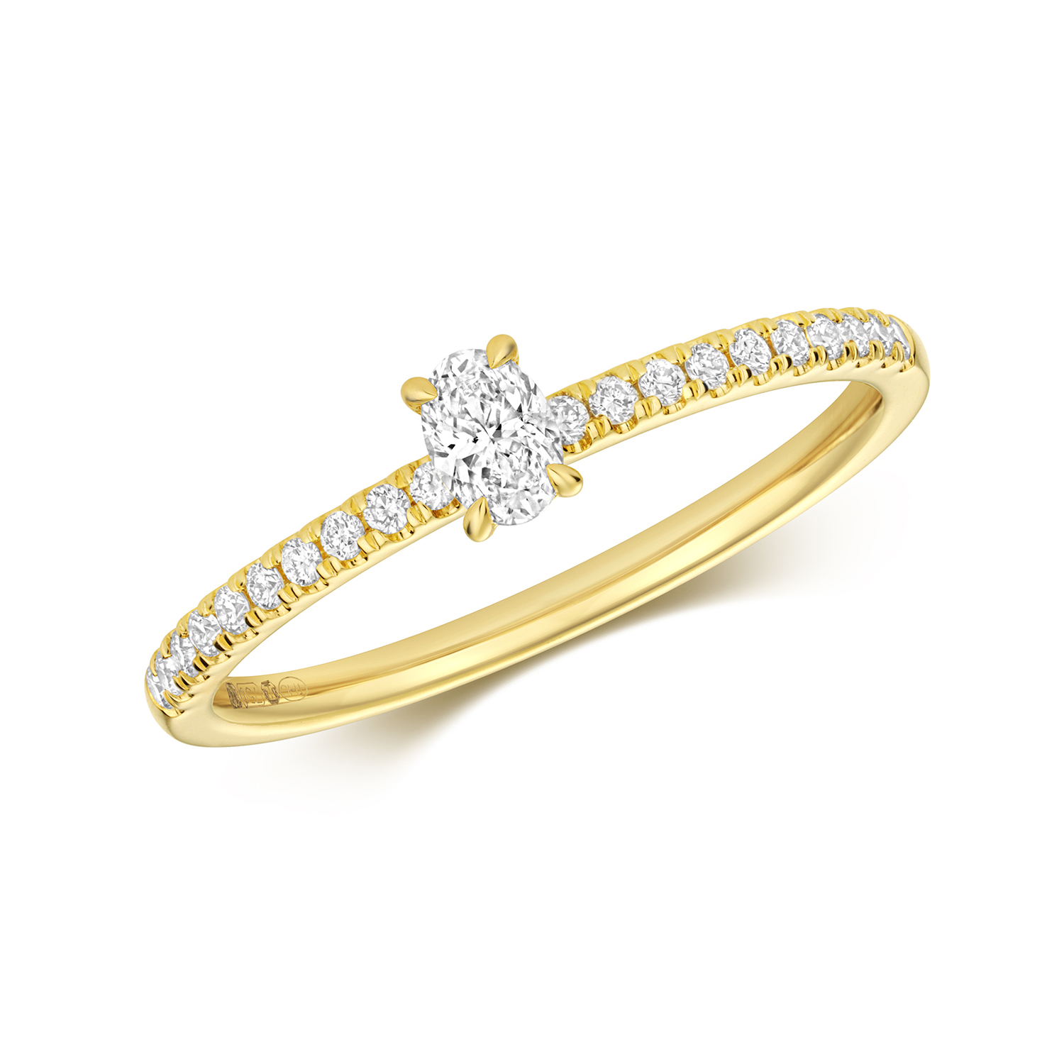New to our range is this absolutely beautiful Diamond ring, manufactured in luxurious 18 carat yellow gold. Set with a 0.19 carat oval diamond , colour G, clarity VS2 and round brilliant cut diamonds weighing a total of 0.16 carats. This is a stunning ring for that special someone to seal your love forever. Pick your dream ring from our vast range, available in a variety of metals and designs.