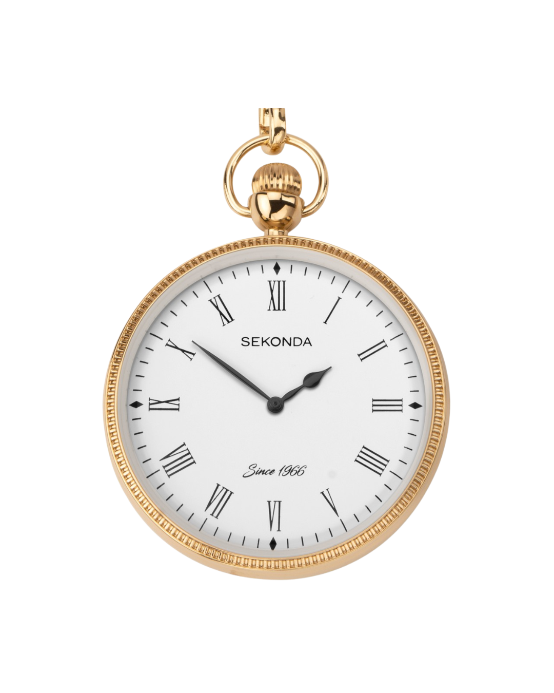 A Sekonda Men’s gold plated pocket watch. This functional Sekonda men’s gold plated Pocket watch is perfect for men on the move. The timepiece features a round ionic plated gold coloured coin edge case enclosing a matte white dial. A Pocket watch finished with an ionic plated gold coloured chain making it a stylish touch.