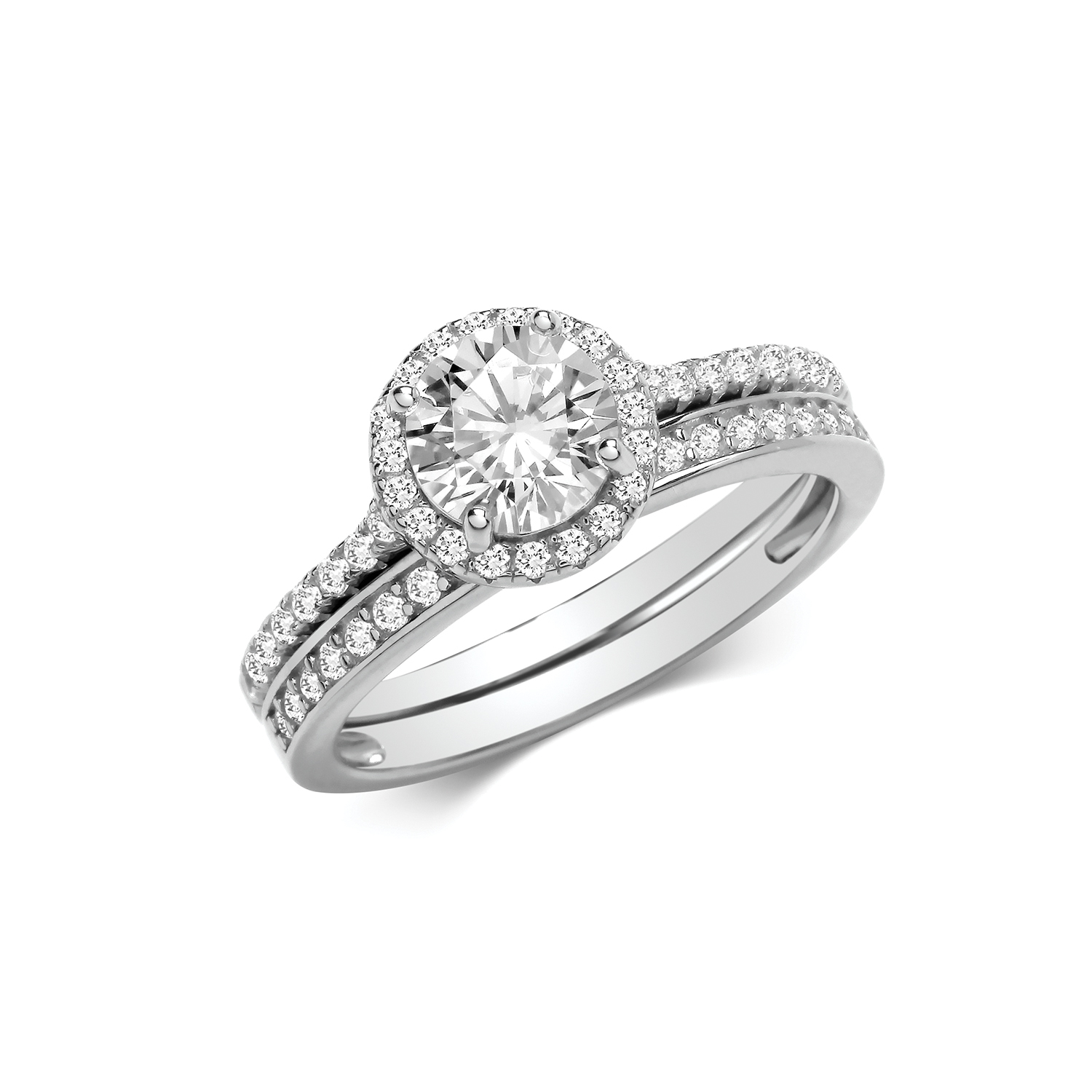 These absolutely stunning rings are one of our new range of sterling silver fancy wedding ring sets. The ring is set with round cubic zirconias. The matching band is also set with round cubic zirconias. These are a real showcase for that momentos day. For that special someone to seal your love forever. Pick your dream ring from our vast range available in a variety of metals and designs.